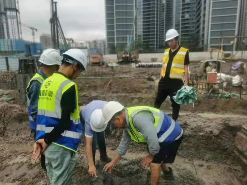 面對該項目地層區(qū)域差異性大,協(xié)調(diào)溝通任務(wù)重,施工條件艱苦,疫情防控形勢嚴峻等不利因素,昌廈公司周密部署,迎難而上,集合施工人才,組建高效協(xié)作施工團隊,保障項目順利推進。在項目實施過程中,樁基礎(chǔ)工程采用泥漿護壁鉆孔灌注樁樁端樁側(cè)復(fù)合后注漿及預(yù)應(yīng)力管樁的施工工藝;基坑支護工程的結(jié)構(gòu)采取“樁-撐”的形式;止水帷幕及土體加固采用三軸攪拌樁支護形式。項目團隊努力克服8月份疫情嚴峻形勢及高溫天氣的影響,落實疫情防控措施和安全生產(chǎn)管理工作,定期組織技術(shù)交流與培訓(xùn),積極與各方單位協(xié)調(diào),高效安全進行多線作業(yè),確保高質(zhì)量完成工期任務(wù)。