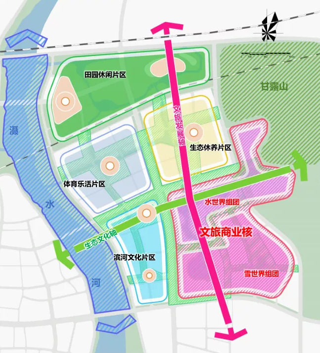 項目規(guī)劃用地約1.1萬畝,打造“一核兩軸四片區(qū)”的空間格局:項目“一核”圍繞湖面,布局多元文旅業(yè)態(tài),其中包括約9萬方的全球最大冰雪娛樂綜合體,約2萬方的水娛樂綜合體,約30萬方的酒店康養(yǎng)民宿群以及集萃黃陂人文的特色水鎮(zhèn)商街;“兩軸”將建設文旅發(fā)展軸和生態(tài)文化軸;“四片區(qū)”即以水系為主線,形成濱河文化、體育樂活、田園休閑、生態(tài)休養(yǎng)四大片區(qū),為游客提供全天候、全季節(jié)、全齡段、全業(yè)態(tài)的文化旅游服務。