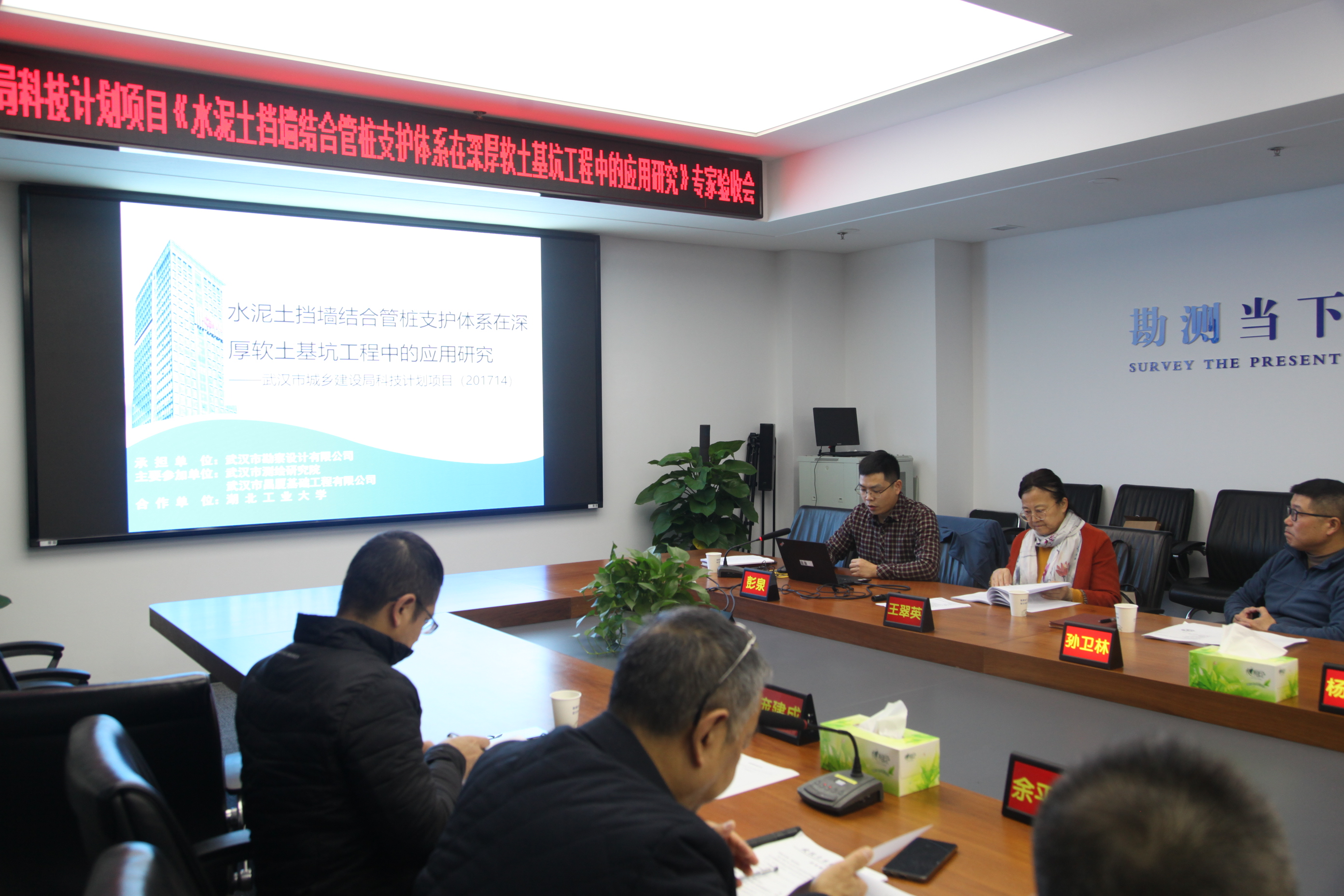 12月15日,武漢市城鄉(xiāng)建設(shè)局組織武漢土木建筑協(xié)會(huì)有關(guān)專家組,在公司1717會(huì)議室召開科研項(xiàng)目驗(yàn)收會(huì)。公司與武漢市測(cè)繪研究院、湖北工業(yè)大學(xué)、武漢市昌廈基礎(chǔ)工程有限責(zé)任公司共同承擔(dān)完成的《水泥土擋墻結(jié)合管樁支護(hù)體系在深厚軟土基坑工程中的應(yīng)用研究》(項(xiàng)目編號(hào) 201714)科研項(xiàng)目順利通過(guò)驗(yàn)收。武漢市城鄉(xiāng)建設(shè)局勘察設(shè)計(jì)與科技處處長(zhǎng)徐蘭,公司總經(jīng)理施木俊等領(lǐng)導(dǎo)參加會(huì)議。