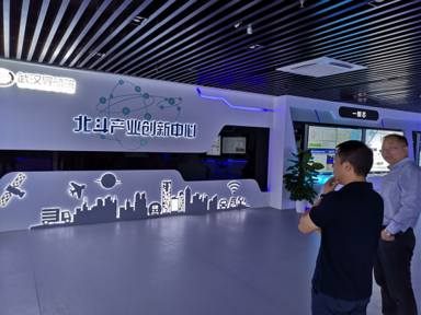 在總經(jīng)理王波、副總經(jīng)理華中雄等人的陪同下,測繪公司一行人參觀了北斗產(chǎn)業(yè)創(chuàng)新中心。王波總經(jīng)理從軟件平臺、數(shù)據(jù)研發(fā)、行業(yè)應(yīng)用、運營服務(wù)等方面對北斗產(chǎn)業(yè)的發(fā)展與應(yīng)用情況進行了詳細介紹,并表示湖北地信集團致力于積極推動北斗和其他領(lǐng)域的融合發(fā)展,形成了初具規(guī)模的產(chǎn)業(yè)鏈,充分基于衛(wèi)星定位、云計算、物聯(lián)網(wǎng)等新技術(shù),開拓了政務(wù)、民生、產(chǎn)業(yè)三大類十余項的智慧應(yīng)用,已逐漸深入到城市建設(shè)和管理的各個領(lǐng)域。